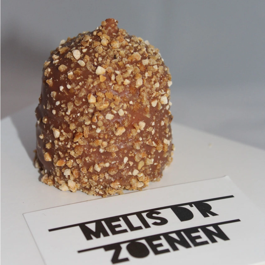 Krokant Melk is lekker knapperig en zit vol me nootjes aan de buitenkant, de binnenkant is neutraal. De smaak zit alleen aan de buitenkant.